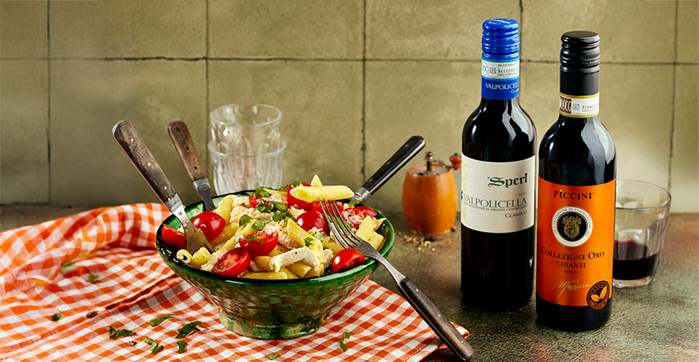 Pastan pariksi sopii erinomaisesti kaksi italialaista klassikkoviiniä, jotka maistuvat erinomaisesti myös pienemmässä koossa.